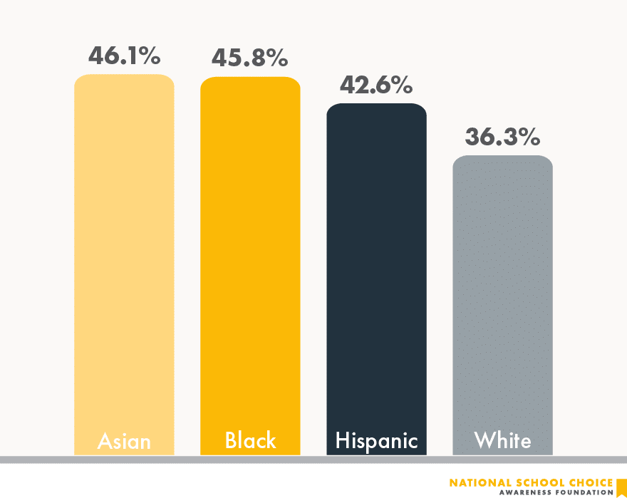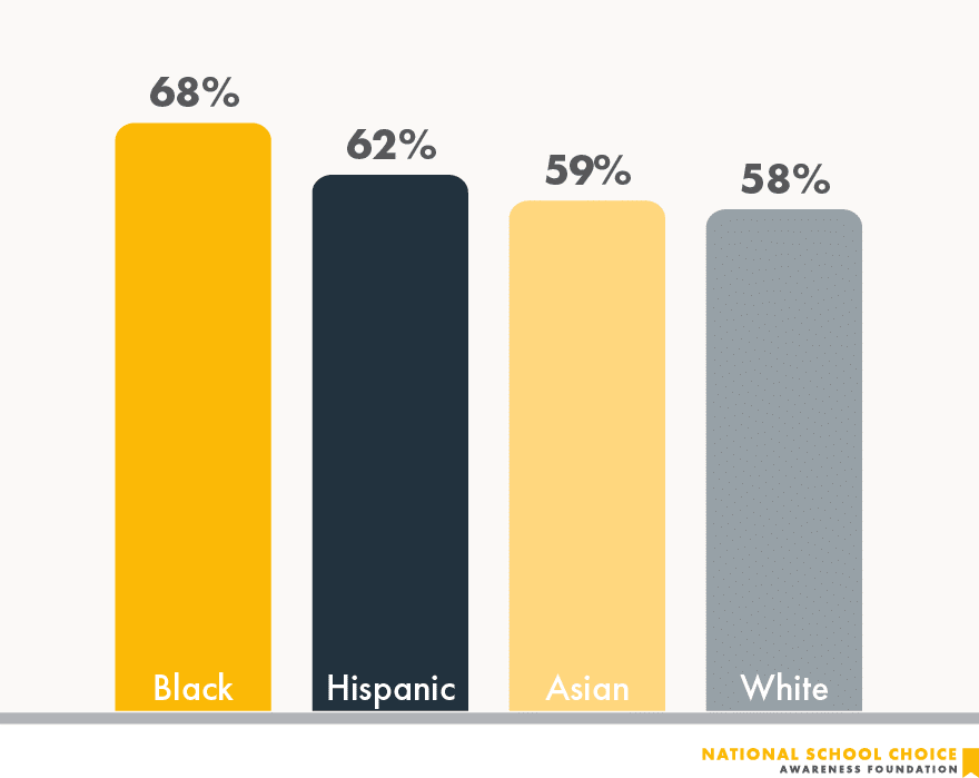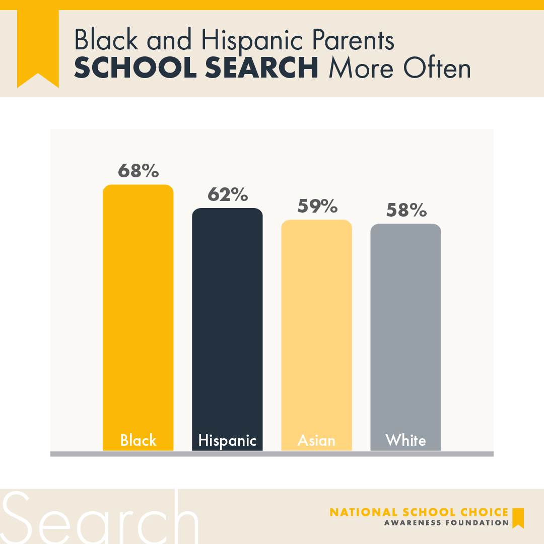 Black and Hispanic parents were more likely to indicate that they searched for new schools for their children, at 68% and 63% respectively, compared with Asian parents (59%) and white parents (58%).