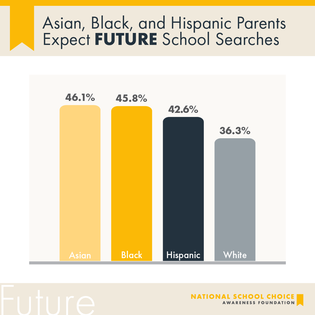 40% of U.S. parents said they were likely to search for a new or different school for at least one of their children in 2025. Asian and Black parents were most likely to indicate interest in searching for schools this year (at 46% each).